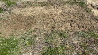 いただいた固定種の野菜の育苗をするために、6坪ほどのビニルハウス資材を購入しました。まずはハウスを建てる場所の整地から始めます。作業前写真のスペースにハウスを建てようとしています。ハウスのサイズより少し大きめに線をひっぱってから作業を開始し...